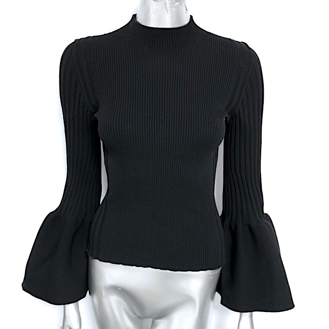> ☆二点落札で送料無料!2A48【極美品】CFCL POTTERY LONG BELL SLEEVE TOP ベルスリーブ S-M リブニット 黒 ブラック シーエフシーエル