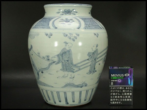 - 【銀閣】中国美術 青花 染付 人物紋 壷 高23.5cm 旧家蔵出 送料無料(LC642)