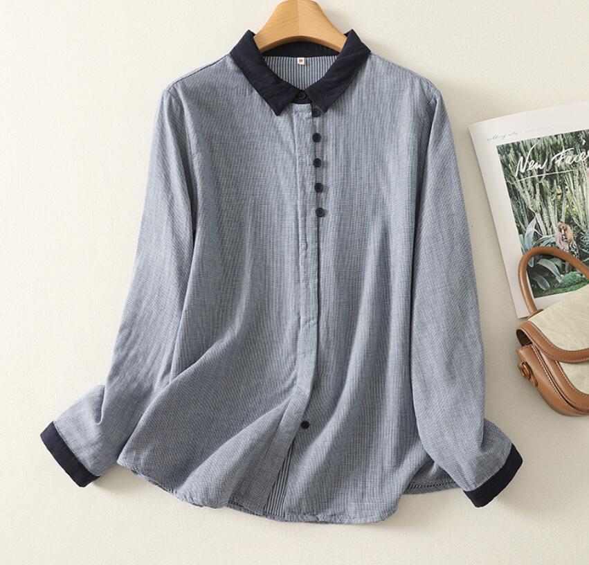 - 新入荷ワイシャツ フリーサイズ チュニック トップス 綿100% ダブルガーゼ ナチュラル 通気性肌触り抜群 千鳥格