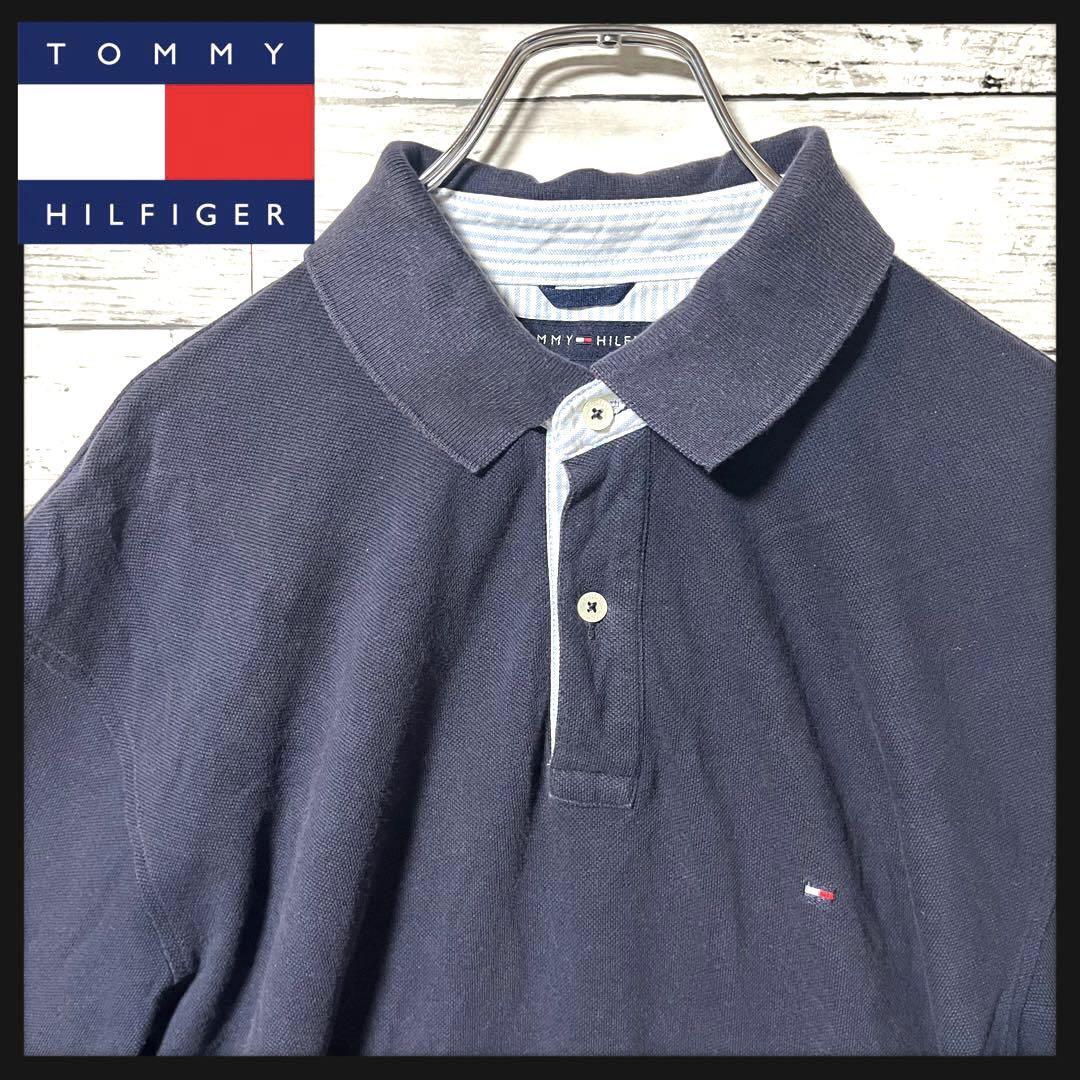 - 【定番カラー】トミーヒルフィガー ネイビーポロシャツ 刺繍ロゴ L A217