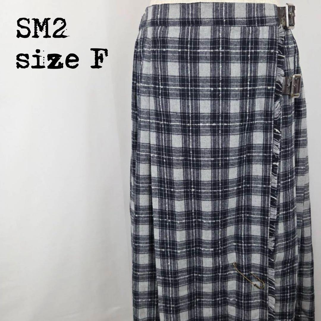 > SM2 サマンサモスモス チェック柄ロングスカート size F ベルト付き