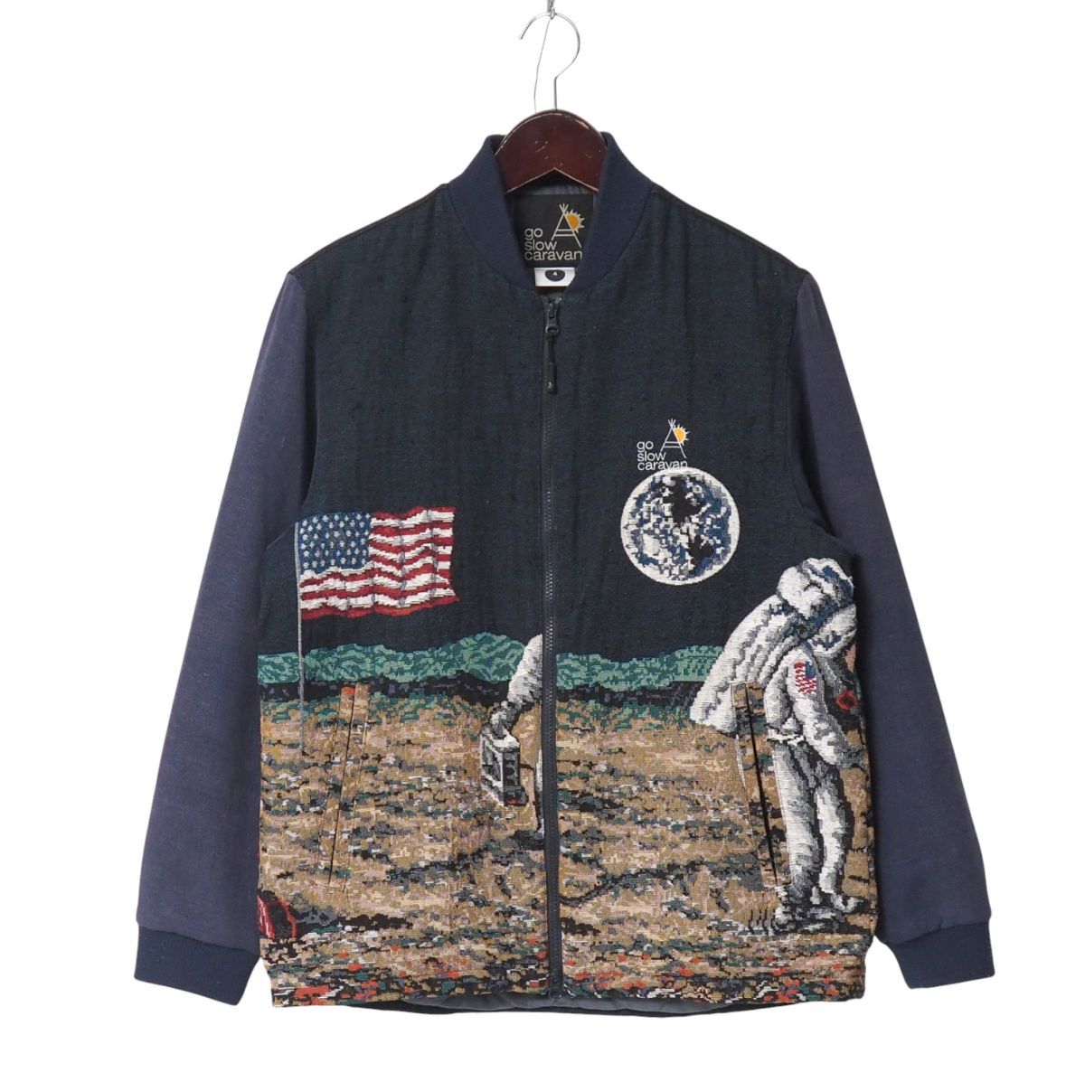 - TI9364◎go slow caravan ゴースローキャラバン ジャガード 宇宙飛行士 月面着陸 ジップアップ 中綿 ジャケット ブルゾン サイズ4 メンズ