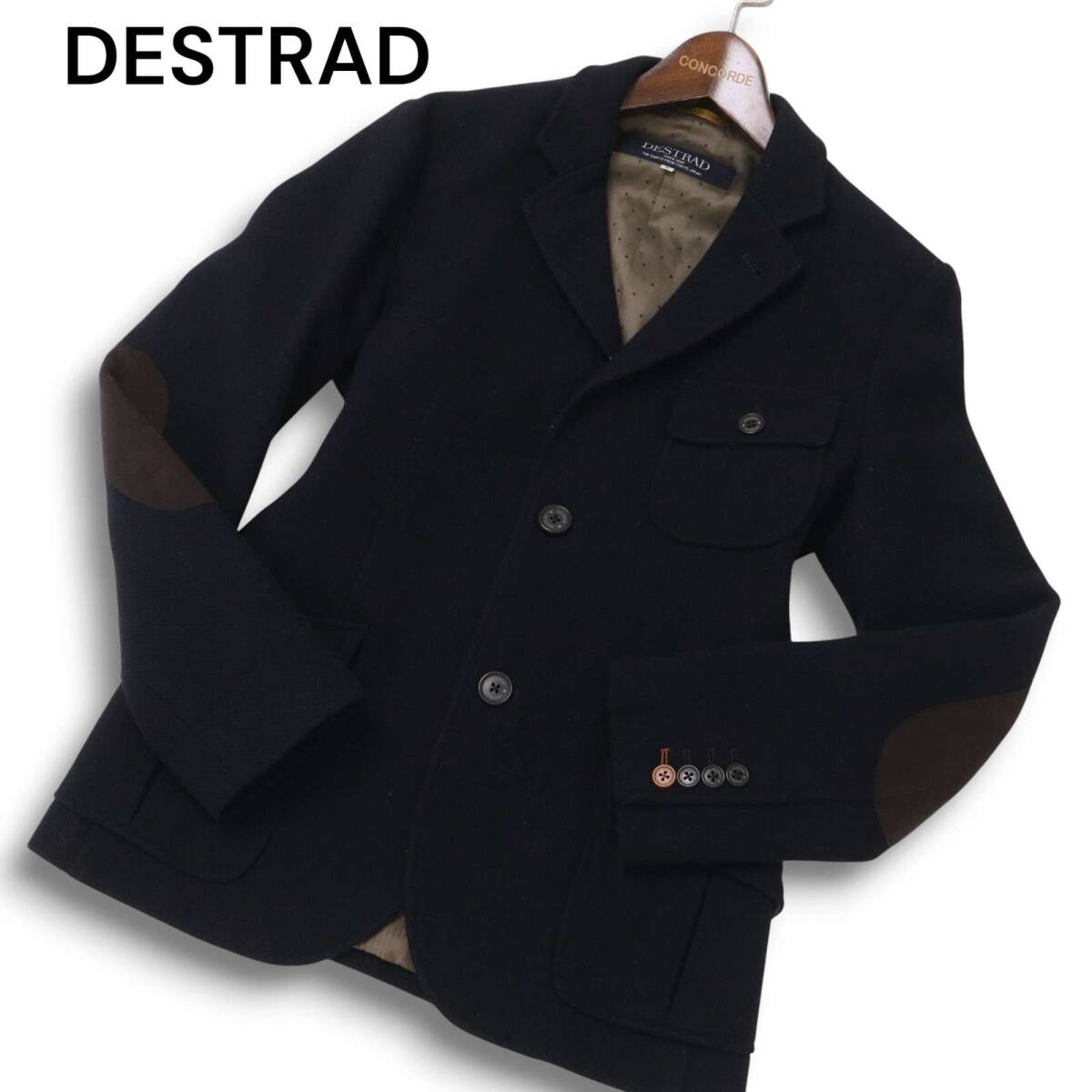 > DESTRAD 秋冬 エルボーパッチ★ ウール100% スリム テーラード ジャケット Sz.S メンズ ネイビー 紺