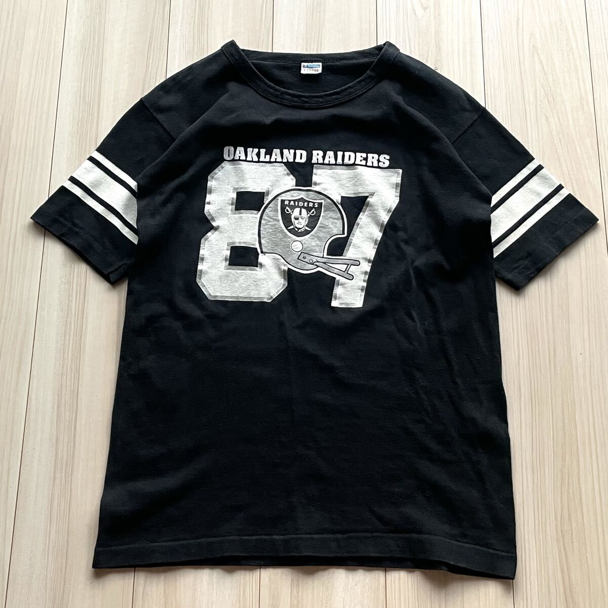- これはカッコイイ!ブラックでXL!70s チャンピオン フットボールTシャツ バータグ レイダース Champion ビンテージ Vintage 黒 USA製 レア
