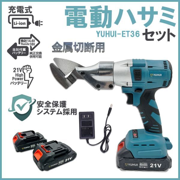 > ★送料無料・30日間保証付き★充電式 メタルカッター 板金ハサミ 金属切断 ステンレス アルミ カット コードレス 21Vバッテリー2個セット