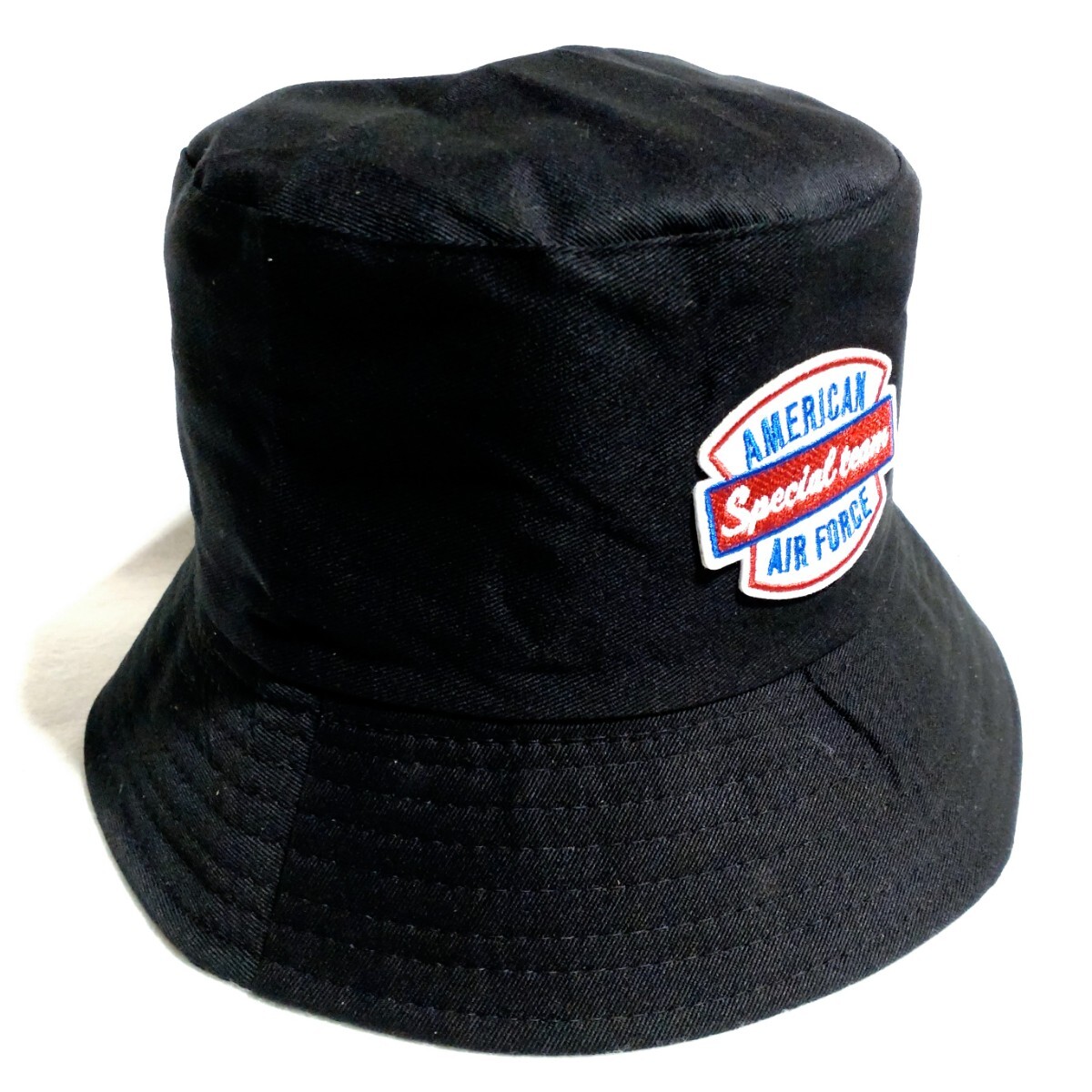 > 特価/未使用【サイズ=58~59cmフリー】ノーブランド/アメカジ刺繍ロゴ/男女兼用/リバーシブル/バケットハット/black