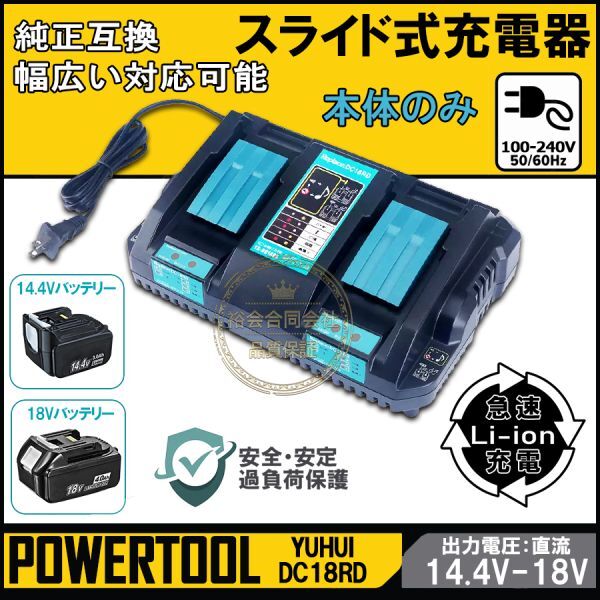 > ★送料無料・30日間保証付き★DC18RD 2口充電 互換充電器 マキタ 14.4v/18v バッテリー充電器 2台同時充電可 急速充電対応 多冷却口設計