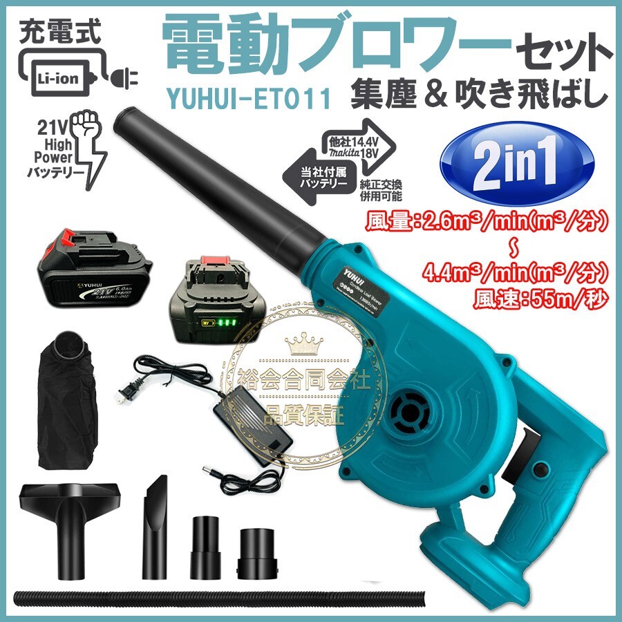 > ★送料無料・30日間保証付き★充電式 コードレス ブロアー 集塵機 掃除機 一台二役 集塵 庭掃除ブロワー バッテリー2個付き
