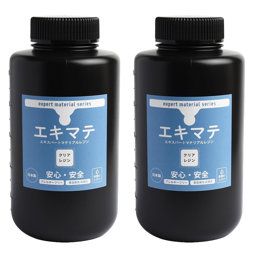 - 【食品衛生法適合】エキマテ 1000g×2本 光造形 3Dプリンタ用 水洗いレジン《クリア》DLP / LCD対応 日本製