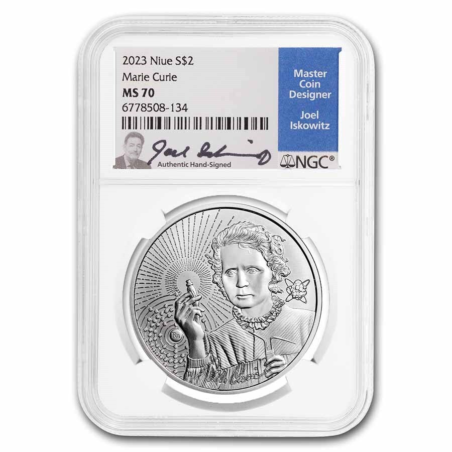 - [保証書・スラブ付き] 2023年 (新品) ニウエ「アイコン・マリー・キュリー」純銀 1オンス 銀貨 NGC MS70