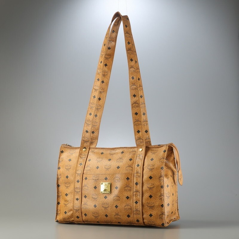 > MI1682■MCM エムシーエム レザー トートバッグ ショルダーバッグ 肩掛け 鞄 ヴィセトス柄 総柄 コニャック ブラウン系