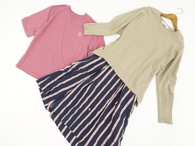 > 美品 ROPE PICNIC系 トレーナー2点+ひざ丈スカート コーディネート3点 M相当 グレージュ/ピンク系/紺地 ストライプ カジュアル系 20代