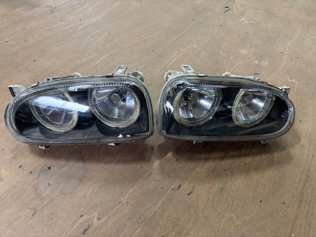 > maMO★H7 VW ゴルフ3 カブリオレ★社外ヘッドライト左右セット イカリング ランプ★ゴルフⅢ GOLF フォルクスワーゲン E-1EADYK/部品取り車