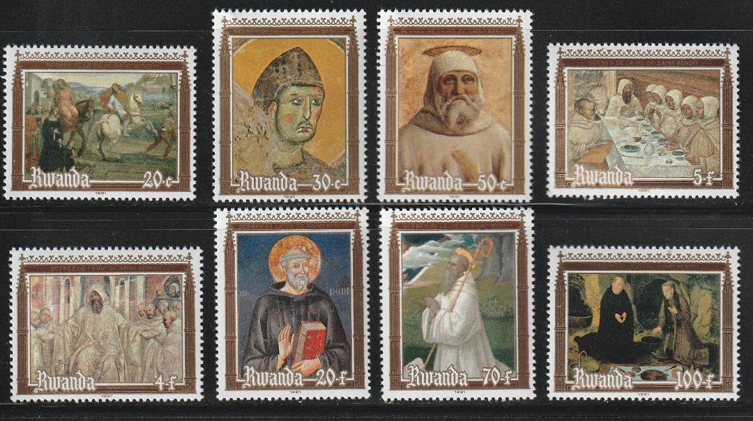 - (ルワンダ)1981年聖ベネディク生誕1500年8種完、スコット評価8ドル(海外より発送、説明欄参照)