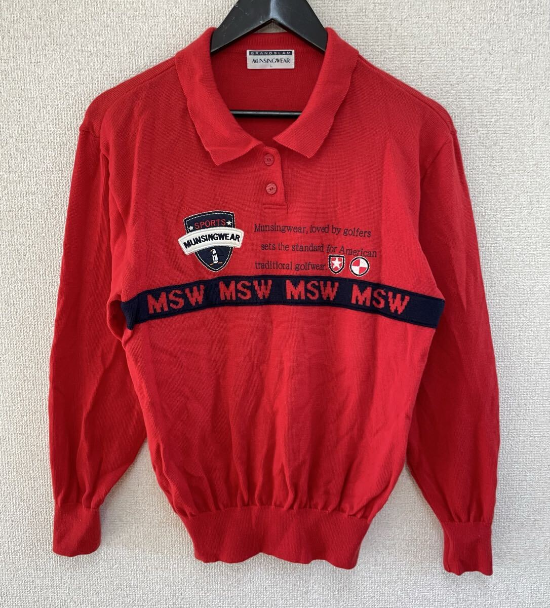 > 美品 Munsingwear マンシングウェア デサント 長袖 ゴルフ ニット セーター レディース Lサイズ ウール100%