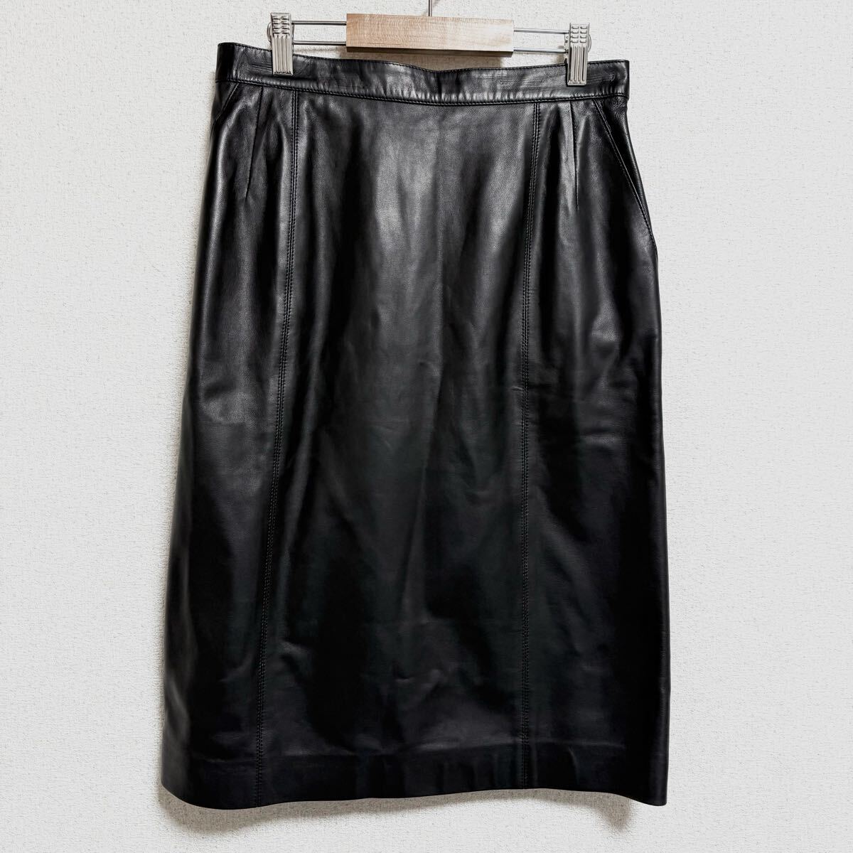 > 【定価¥115,500-】 本革 Jun ashida ジュンアシダ レザースカート タイトスカート 羊革 ラムレザー ブラック レディース サイズ 9 *CT