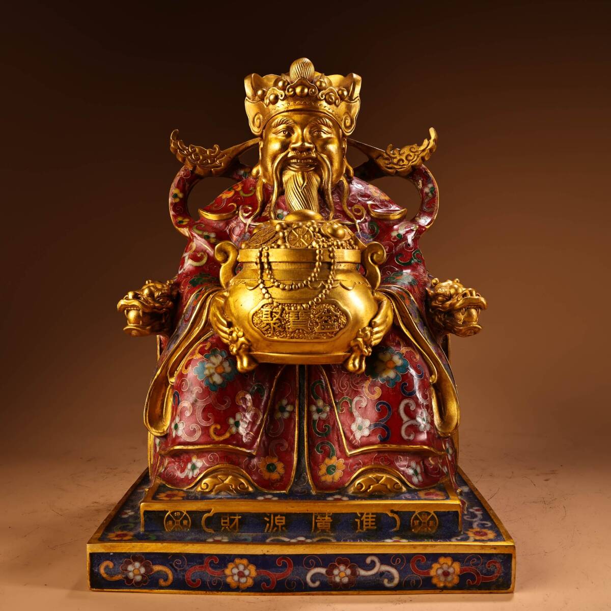 > 『館蔵珍品 銅製 塗金 浮彫 鏨刻 景泰藍 琺瑯彩 財神爺像 置物 賞物』稀少珍蔵品 古賞物 貴重物品 収蔵品 中国古美術 時代物 古董品
