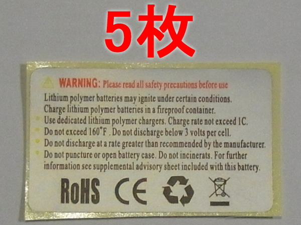 - 5枚 リポ Li-Po リチウムポリマーバッテリー 注意事項 取説 ステッカー シール 英文 e