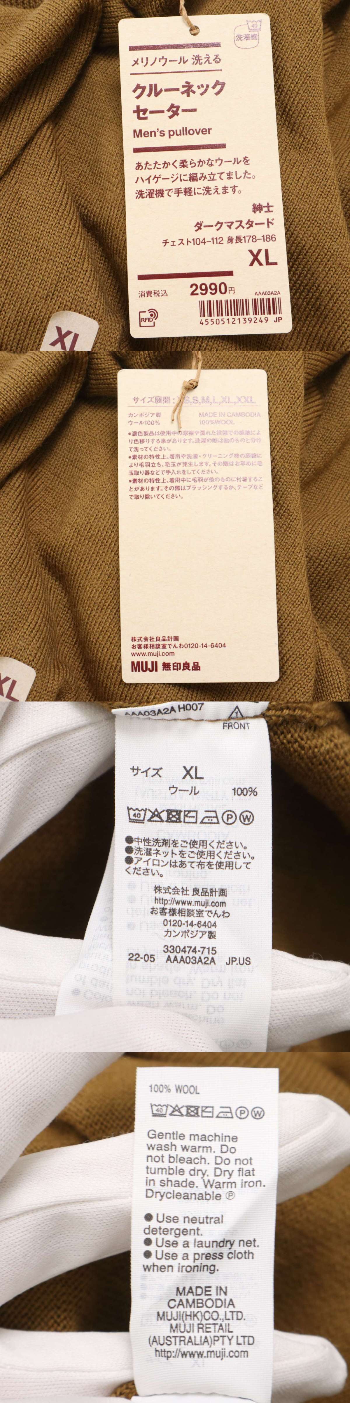> 【新品 22AW】 MUJI 無印良品 秋冬 メリノ ウール100% クルーネック ニット セーター Sz.XL メンズ 大きいサイズ 未使用