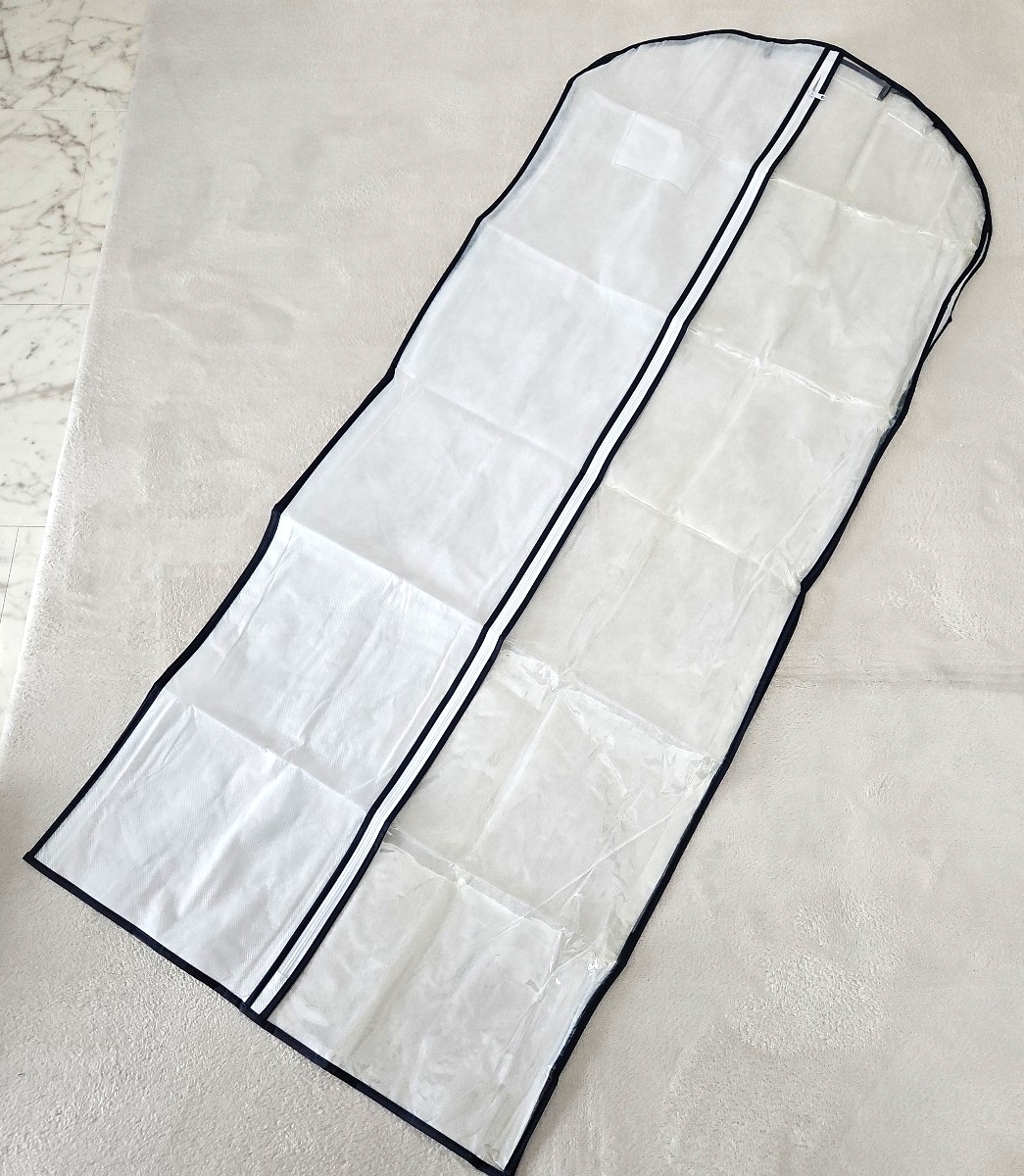 > 【新品】保管品 衣装カバー ファッションカバー 半分透明・ファスナータイプ サイズ幅60×長さ137 透明部分変色あります 20枚セット