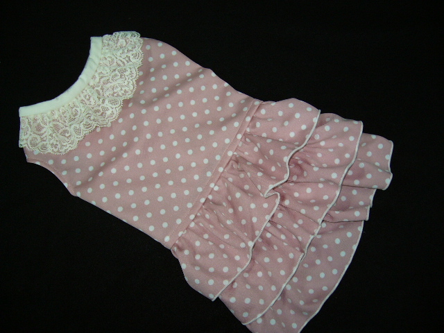 - MDダックス等ピンク水玉3段フリフリワンピ