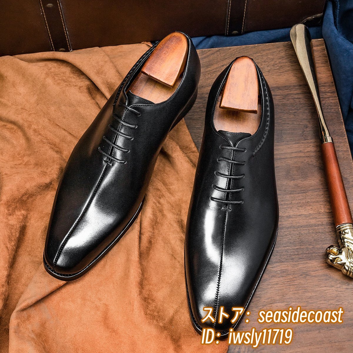 > 定価9万◆超希少 牛革 レザーシューズ 新品 メンズ ビジネスシューズ 本革 革靴 フォーマル 超希少 職人手塗仕上げ 紳士靴 ブラック 27.0cm
