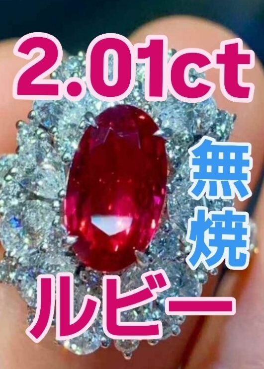 - 2.01ct 無処理 無焼非加熱ノーヒート GRS主証ピジョンブラッド ルビー 18Kリング「純血の輝き 2.01カラットが放つ、主証の赤」新品未使用