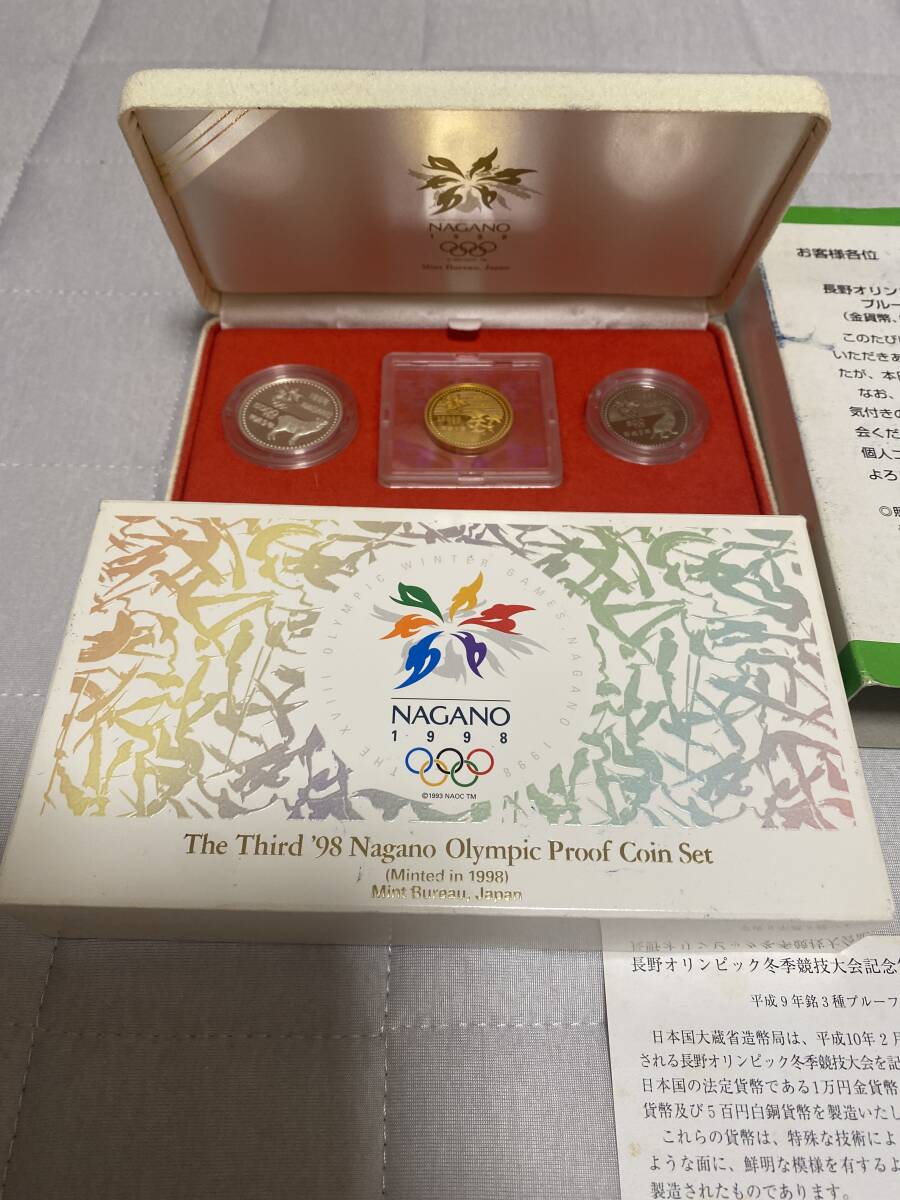 - 長野オリンピック冬季競技大会記念 プルーフ貨幣セット 1998 10000万円純金貨幣、5000円銀貨幣、500円白銅貨幣3点セット