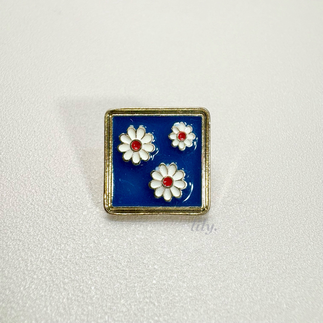 - 【ピンバッジ】デイジー 小さなお花 四角 かわいい