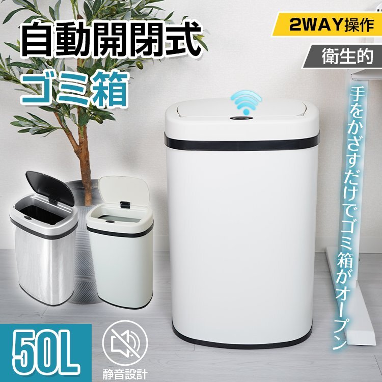 - ゴミ箱 50L 自動開閉式 ごみ箱 非接触 衛生的 触らない フタ付き センサー搭載 ダストボックス ステンレス 大型 キッチン ny177