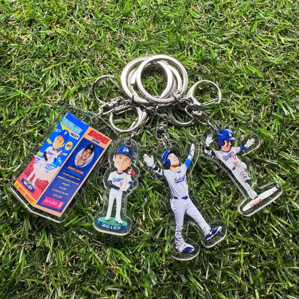 - 非売品 大谷翔平 デコピン ドジャース ボブルヘッド ヒップロック 万歳 アクリル 両面キーホルダー4種類セット