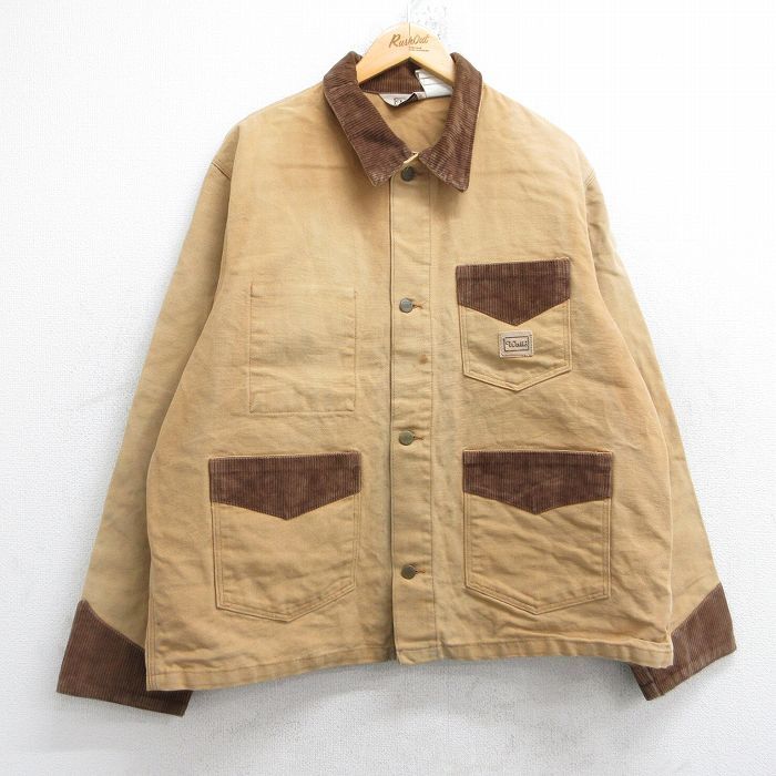 - XL/古着 ウォールズ Walls 長袖 カバーオール メンズ 80s 襟コーデュロイ ダック地 大きいサイズ コットン ベージュ系 カーキ 25oct15 中古