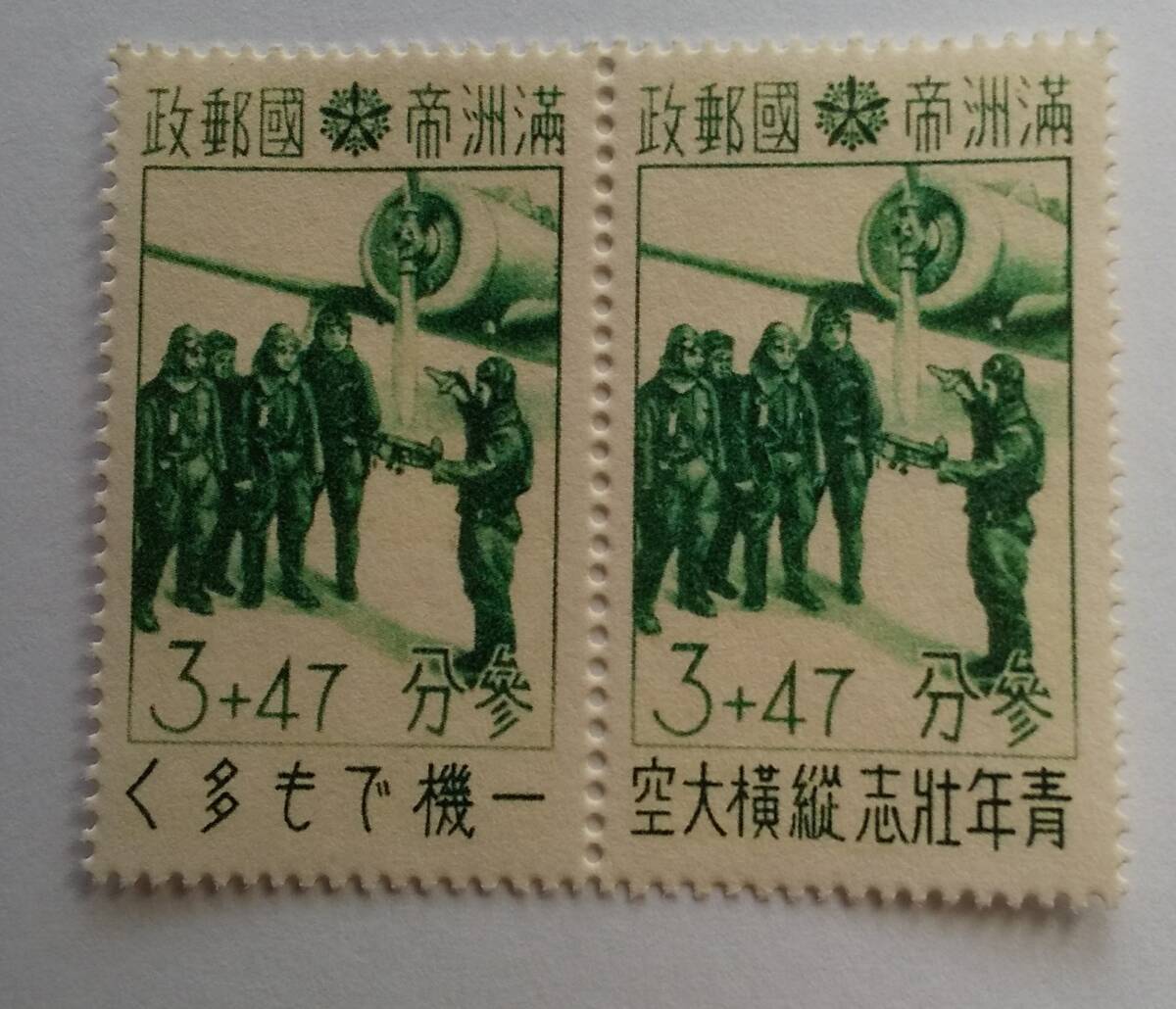 - 満州国 飛行機購入付加金付き ペア 3+47分 未使用 レプリカ?
