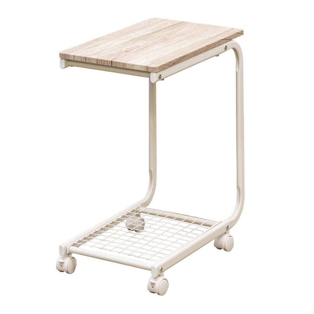 > ベッドテーブル ソファサイド テーブル デスク 50cm×30cm スチール ワゴン UYS-08 アンティークアイボリー(AIV)