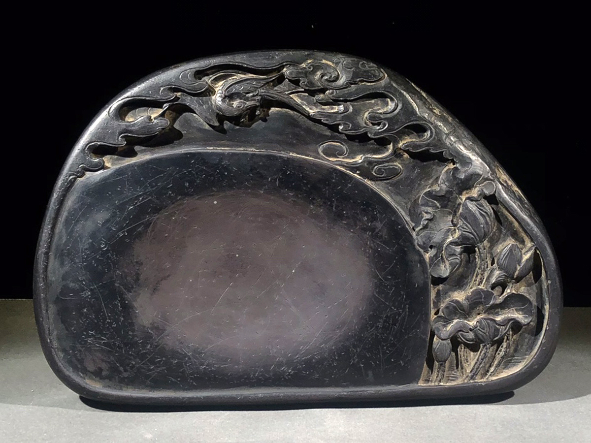 - ▽鴻▽清時代 駱成驤銘 端石彫 荷葉鳥紋硯 端渓硯 唐硯 墨寶 書道具 時代物 中国古美術 骨董品
