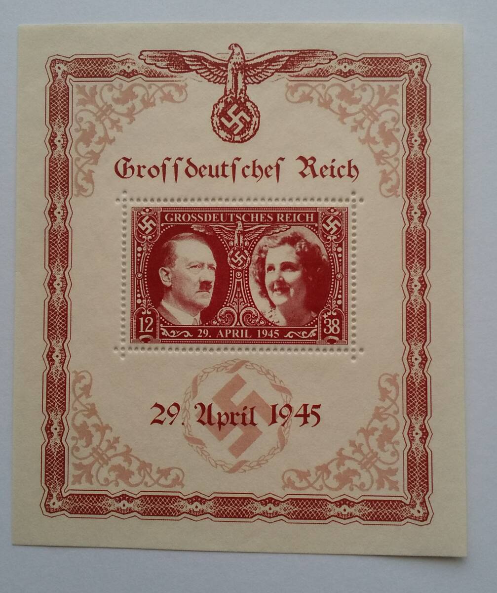 - ナチスドイツ 1945 ヒトラー成婚 エヴァブラウン 12+38ペニヒ 小型シート 未使用 エッセイ レプリカ?