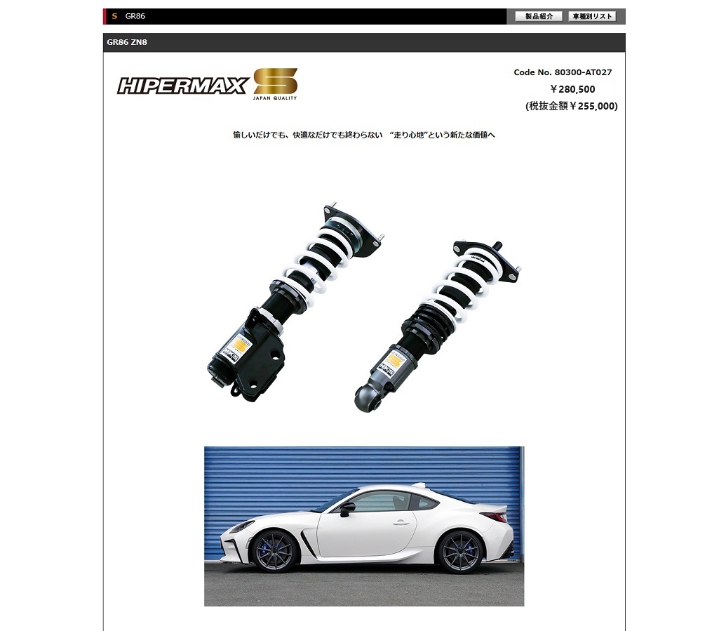 - ☆送料無料 在庫 有り HKS 車高調 HIPERMAX S 全長調整式 減衰力30段 ハイパーマックス トヨタ 現行 86 ZN8 GR86 新品 80300-AT027