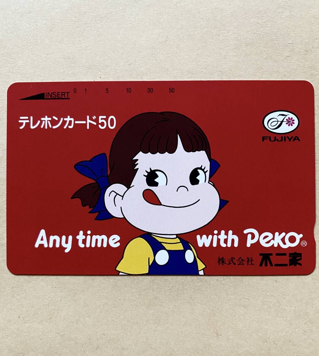 - 【未使用】 テレカ 50度 ペコちゃん Any time with Peko 不二家