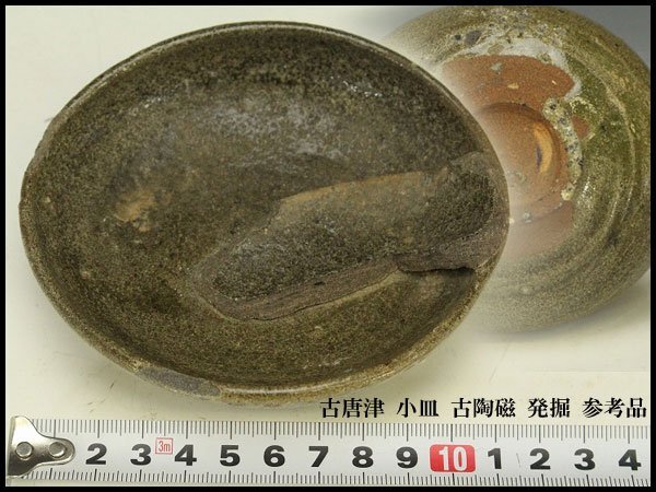 - 【銀閣】古唐津 小皿 古陶磁 発掘 参考品 11.5cmx10cm 旧家蔵出 送料無料(ZE339)