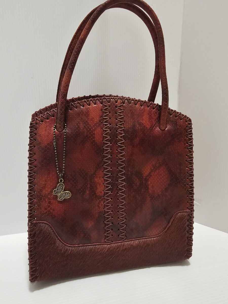 - アナスイ 希少 レザーバッグ深紅ベースリアルなパイソン型押し×ハラコ ハンドバッグ 本革 レザー