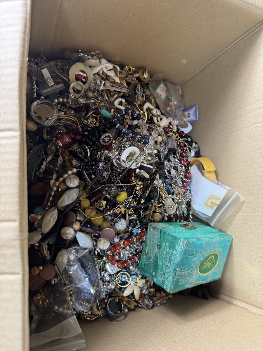 - 1円 イミテーション アクセサリーまとめ ネックレス ブローチ イヤリング リング メッキ 指輪 タイピン 約8kg ジャンク 現状品