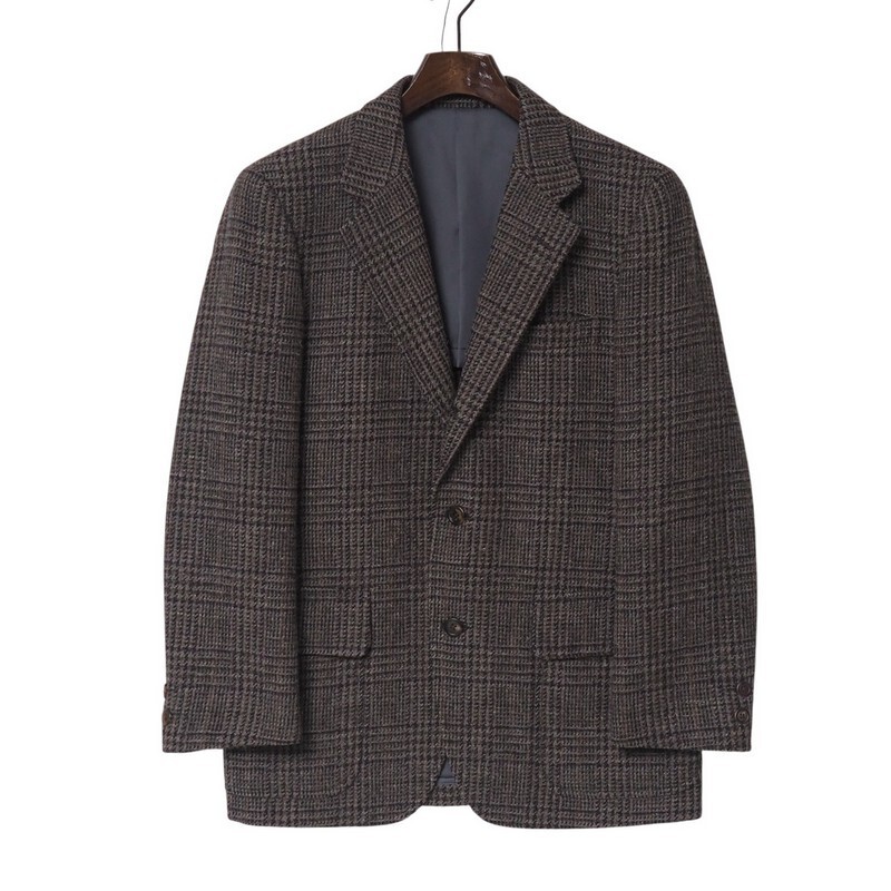 - TJ5473▼Jプレス J.PRESS ウール チェック柄 段返り3B ツイードジャケット テーラードジャケット ブレザー ブラウン系 BMJ-3ROV-1A-314
