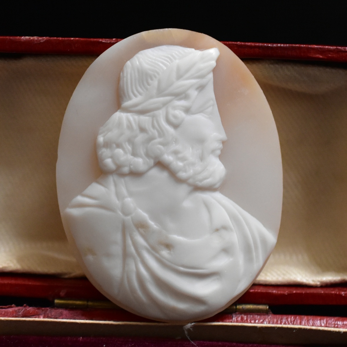 - アンティーク 全能の神ゼウスの白系シェルカメオルース/裸石 19世紀ヴィクトリアン 手彫り 本物保証