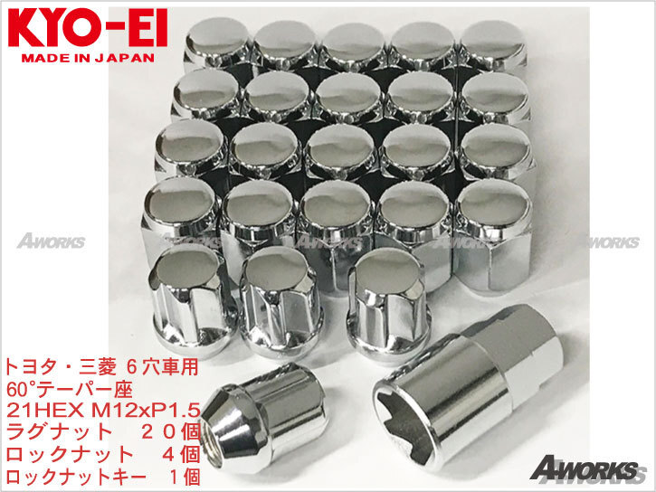 > 日本製 TUSKEY ロックナットセット 6穴車 1台分★60°テーパー座 M12xP1.5 メッキ/ハイエース200系 社外アルミホイール/T601-101S
