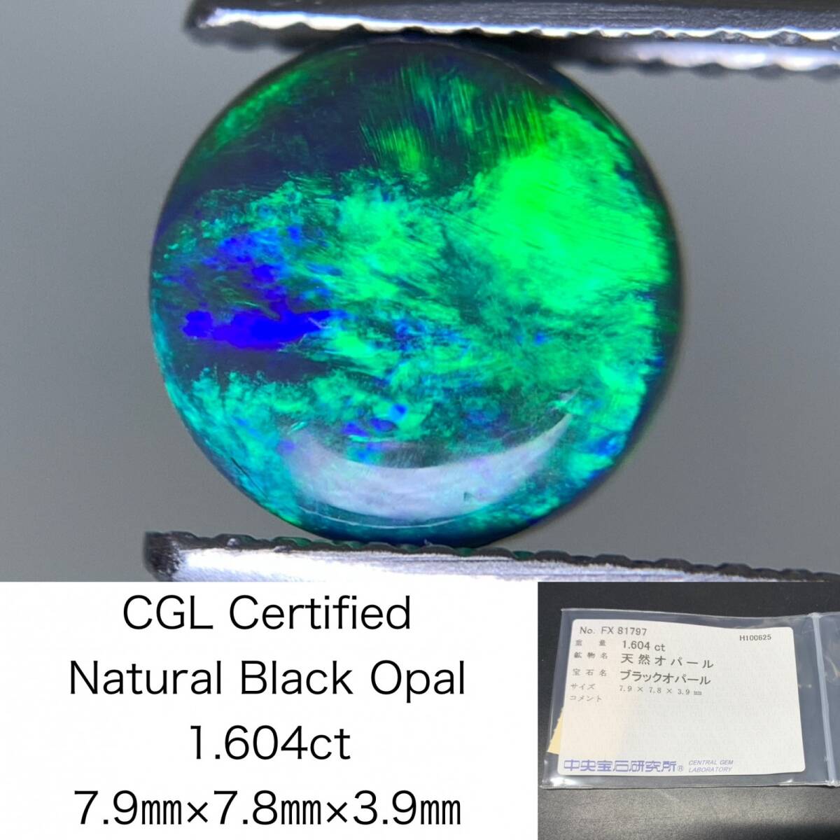 > ブラックオパール 天然 1.604ct 中央宝石ソーティング付き 7.9×7.8×3.9 ルース( 裸石 ) 7001Y