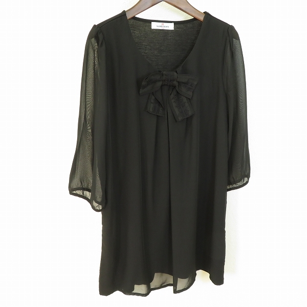 - #a ギャラリービスコンティ GALLERYVISCONTI チュニック 3 黒 七分袖 リボン 異素材 938946 k01