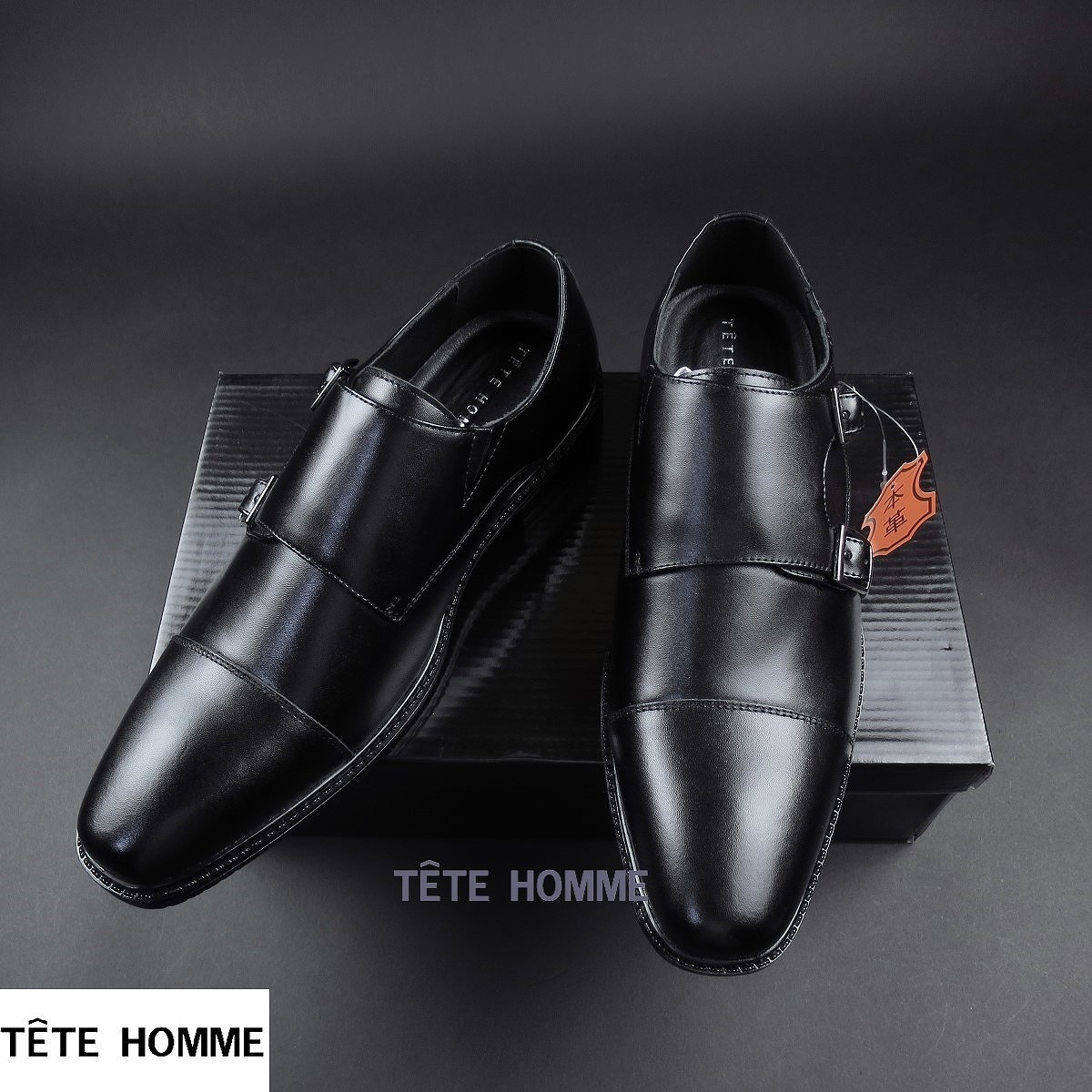 - 新品 ★ TETE HOMME テットオム カウレザー ダブルモンク ストラップ ドレスシューズ 5302/911黒/25cm