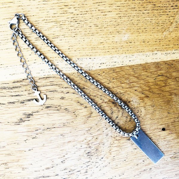 - ステンレスチェーンアンクレット 3mm幅 甲丸ベネチアンチェーン プレートチャーム(約25x9mmx0.9mm)付き 26cm(22cm+4cmアジャスター)