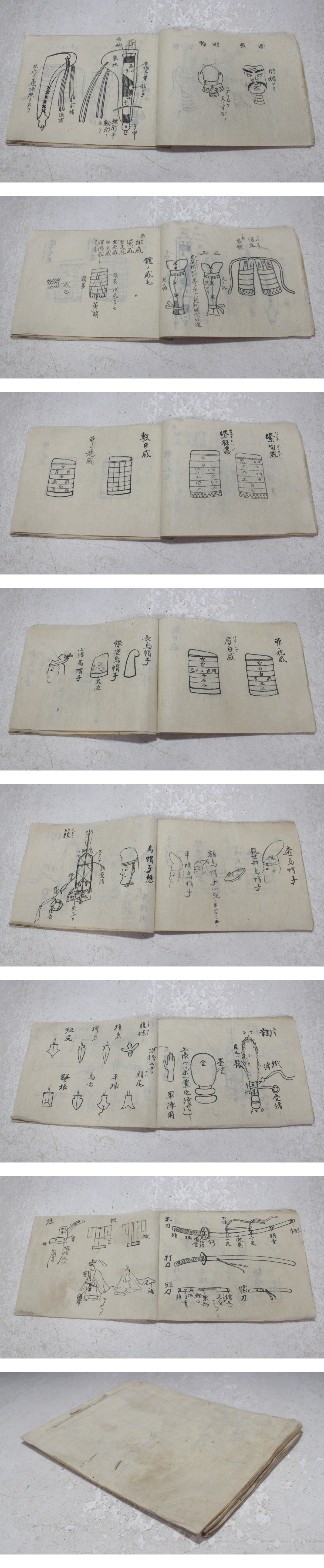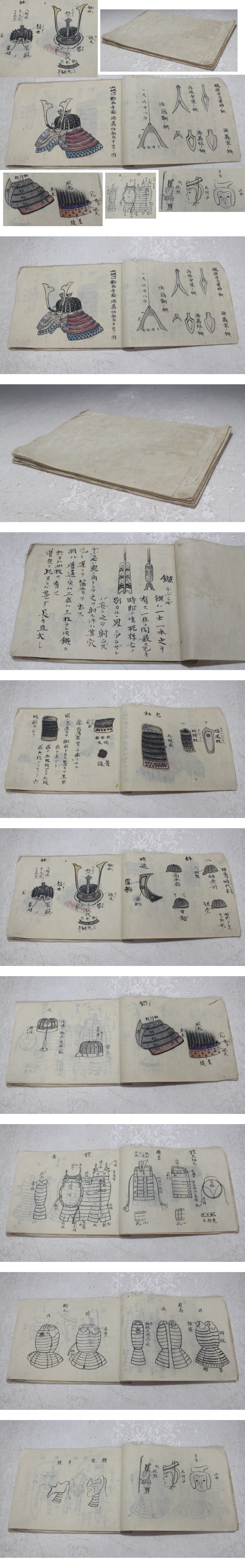 - 刀剣武具鎧甲冑図 画帖 (約14g) 肉筆手描き画帳 戦国時代武士侍 日本絵画美術 チ72