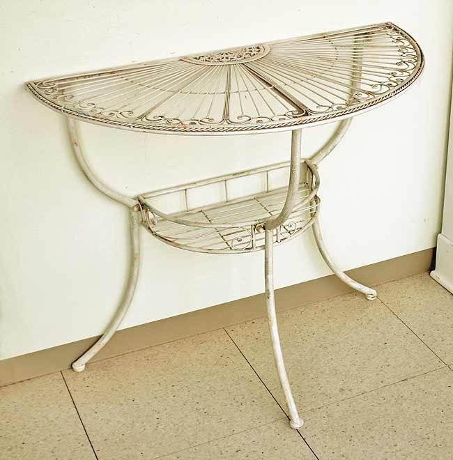半円形のやや大きなサイズで、ガーデニングやバルコニーのサイドテーブルに最適です。